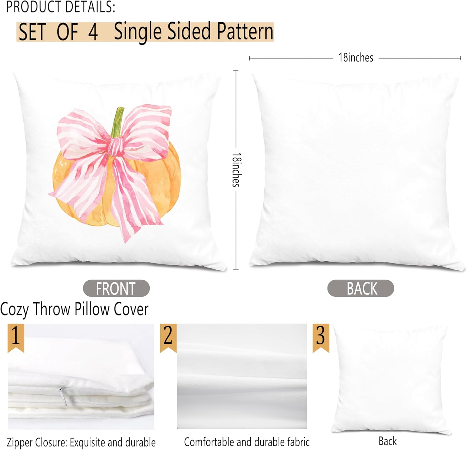 Preppy Fall Pumpkin Pillow Covers 18x18, Pink Orange Coquette Bow Plaid Pumpkin Pillow Covers, Preppy Fall Decor, Fall Pumpkin Decor, Girly Room Decor, Cozy Fall Decor, Fall Home Decor, Set of 4