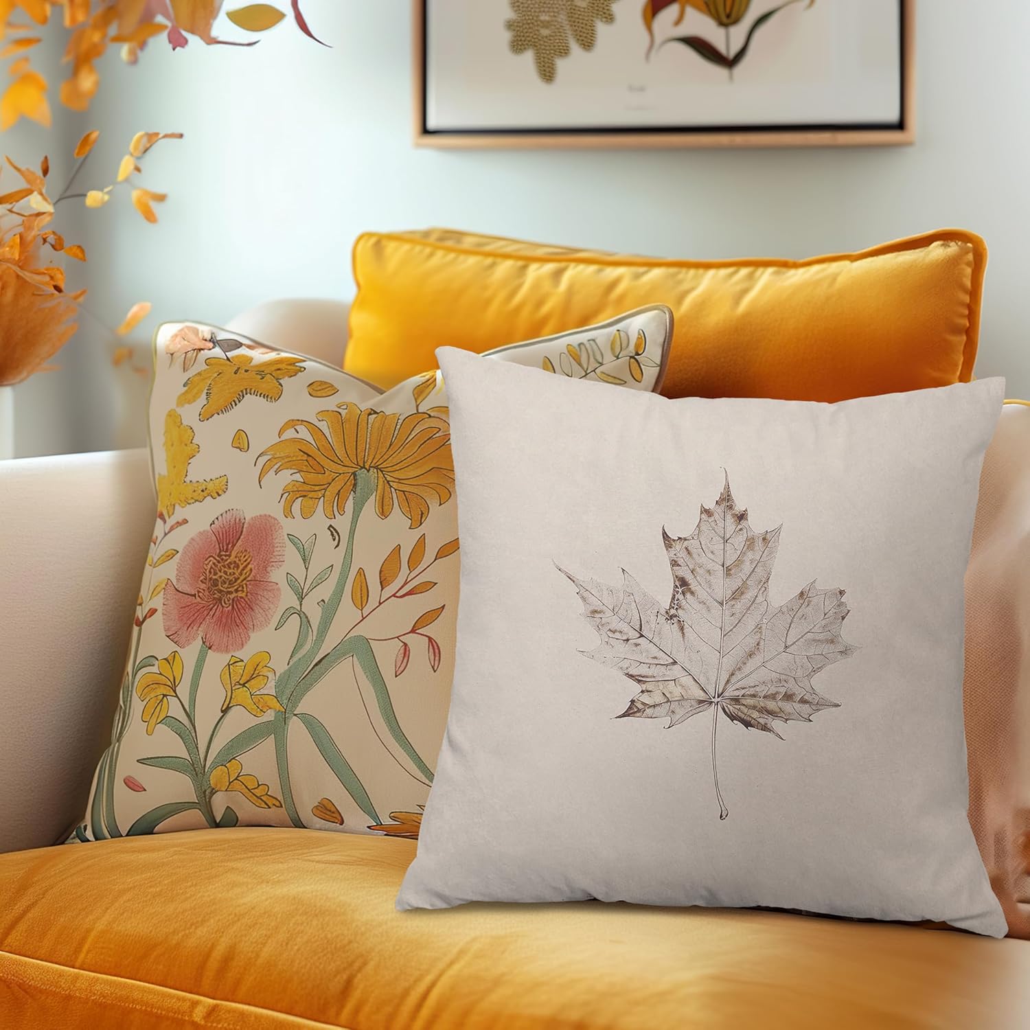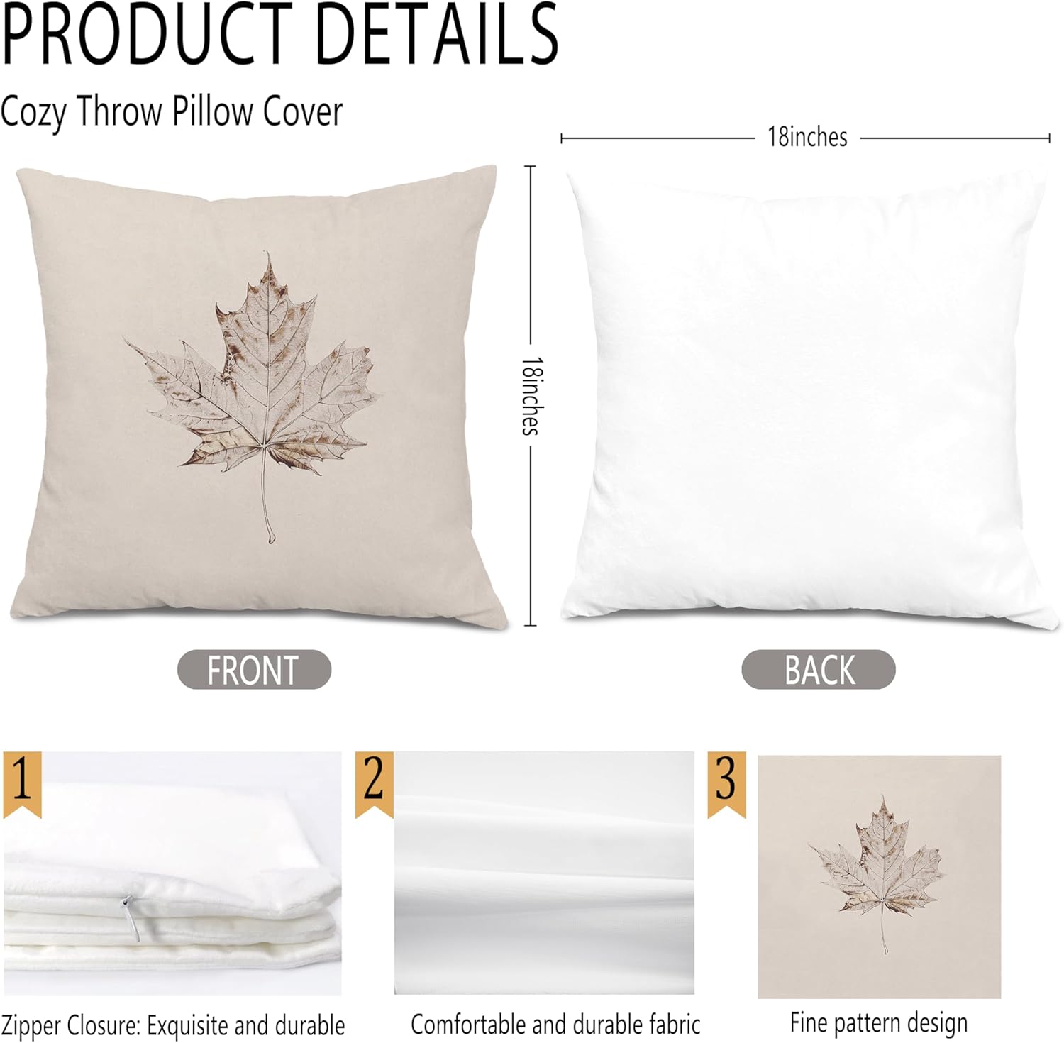 Vintage Fall Pillow Covers 18x18, Fall Autumn Maple Leaf Decorative Pillow Covers for Couch Sofa, Fall Leaf Decor, Fall Home Bedroom Living Room Decor, Cozy Fall Decor, Autumn Pillow Covers